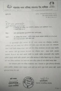 नांदगाव मुख्याधिकारी विवेक धांडे यांच्यावर कर्तव्यात कसूर केल्याप्रकरणी कारवाई करणे बाबत 2 ) स्थायी निर्देशक क्रमांक 39 नुसार न.प. च्या मालकी हक्काच्या 99 वर्षाच्या जागा धारकांनी नगरपरिषदेचा ठराव , कब्जा पावती , बांधकाम परवानगी, सिटी सर्वे ला नावे लावणी बाबतची संमती पत्र,न घेता बेकायदेशीर रित्या नावे नोंद केली असून. सदरील व्यक्तींवर फौजदारी गुन्हा दाखल करून व सदरील जागा न. प.ने जप्ती करून सदरील जागा धारकांनी बेकायदेशीर रित्या बांधकाम केले असून. त्वरित बांधकाम काढून त्या ठिकाणी भव्य कॉम्प्लेक्स उभारण्यात यावे. या संदर्भातील 3 ) सदरील न.प.ने. स्थायी निद्रेश 39 नुसार नोटीसा बजावुन 1 वर्षाचा कालावधी होऊनही अजूनही मुख्याधिकारी विवेक धांडे यांनी कायदेशीर कारवाई करीत नसून, धनधाडग्यांना पाठीशी घालत असुन त्यांच्यावर कुठल्याही प्रकारची कारवाई करत नसुन, 4 ) नांदगाव न.प.ही ( क ) वर्ग असून सदरील मुख्याधिकारी व 1 ते 51 जागा धारक न.प.चा कोटीचा महसूल बुडवित असुन, शासनाची यांची दप्तरी नोंद घेण्यात यावी. 5 ) सदरील 99 वर्षाच्या जागा धारकांनी शासनाची फसवणूक केले असून त्वरित फौजदारी गुन्हे दाखल करून अहवालची साक्षांकीत प्रते मिळेणे बाबत. 6 ) जिल्हा अधीक्षक भुमिअभिलेख कार्यालय नाशिक यांच्याकटे मुख्याधिकारी विवेक धांडे यांनी अपील करून एक वर्षाचा कालावधी उलटूनही सदरील अपिलावर कुठलेही सुनावणी होत नसून .मुख्याधिकारी विवेक धांडे हे भ्रष्टाचाराला पाठीशी घालत आहे व टाळाटाळ करीत आहे.