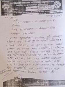 नांदगाव नगरपालिकेचे मुख्याधिकारी विवेक धांडे यांच्यावर कारवाई करणे बाबत 15 ऑगस्टला आत्मदहनाचा इशारा ! अभिषेक अ.विघे राष्ट्रीय ग्राहक संरक्षण संघटन नांदगाव शहराध्यक्ष