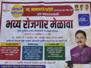 महाराष्टृ राज्यामध्ये येत असलेला भंडारा जिल्हातील साकोली येथे मा, नानाभाऊजी पटोले अध्यक्ष महाराष्टृ प्रदेश काँग्रेस कमेटी यांच्या प्रयत्नाने साकोली विधानसभा क्षेत्रातील बेरोजगार मुला व मुलीना त्यांच्या शैक्षणिक पात्रतानुसार मँनूफँक्चर, फायनान्स, रिटेल, सेल्स व माक्रेटिंग बँकिंग इन्शुरन्स, हाँस्पीटललिटी, फँसिलीटी, टेलिकाँम, व इतर आय, टी, बिपी /केपिओ, फाम्रा इत्यादि नोकरी करिता दि,6/10/022ला सकाळी 9 ते 5 वाजे पर्यत आवश्यक कागदपत्र बायोडेटा, शैक्षणिकप्रमाणपत्रे पासपोटृ, साईझ फोटो, आधार कार्ड, मतदान कार्ड, इत्यादी माहितीचे एका कागदाचे पाच प्रती काढुन सोबत आणावी शैक्षणिता पात्रता वर्ग 8 ते पदव्युक्तर ह्या सर्व मुला व मुलीना स्थळ -मंगलमुर्ती सभागृह,मेनरोड साकोली येथे कागदपत्रे घेऊन नोकरीचा लाभ घेण्याकरिता सर्व साकोली विधानसभा क्षेत्रातील मुला,मुलीना उपस्थित राहावे.