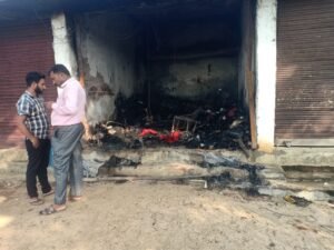 तिरोडा :- गोंडमोहाळी येथिल परमात्मा एक वस्त्र भंडार ला दिनांक 02/09/2023 च्या पहाटे 3 ते 4 वाजता दरम्यान आग लागल्याचे नागरिकांच्या लक्ष्यात आल्या नंतर सर्वत्र आरडाओरळ झाली वा रात्रीच बोरवेल चे विहिरीचे पंप द्वारे आग विझवण्याचे प्रयत्न करण्यात आले त्याच बरोबर अग्निशमन दलाला सुद्धा पाचरण करण्यात आले होते परंतु तो पर्यंत दुकानातील सर्व साहित्य जळून खाक आले होते.