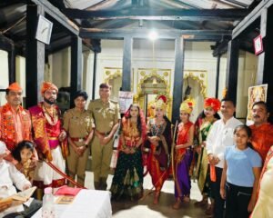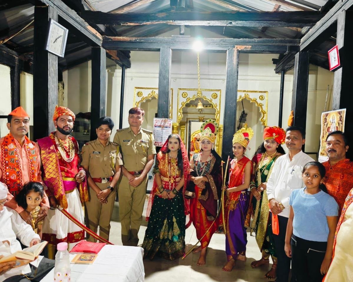 भिवापूर: येथील स्थानिक रामनवमी उत्सव मंडळाच्या वतीने दिनांक 6 एप्रिल 2025 रोज रविवारला भिवापूर पोलीस ठाण्याचे ठाणेदार जयप्रकाश निर्मल तथा पोलीस उपनिरीक्षक सुरेखा बिडकर शरद मिरे पत्रकार आदी मान्यवरांच्या हस्ते मर्यादा पुरुषोत्तम प्रभू रामचंद्र , लक्ष्मण, सीता आदि झाकीचे पूजन -अर्चन करण्यात आले आणि प्रभू रामचंद्राचा जयघोष करीत नाचत गाजत अतिशय जल्लोषात भिवापूर नगरात ग्रामस्थांच्या दर्शनासाठी सादरीकरण करण्यात आले .