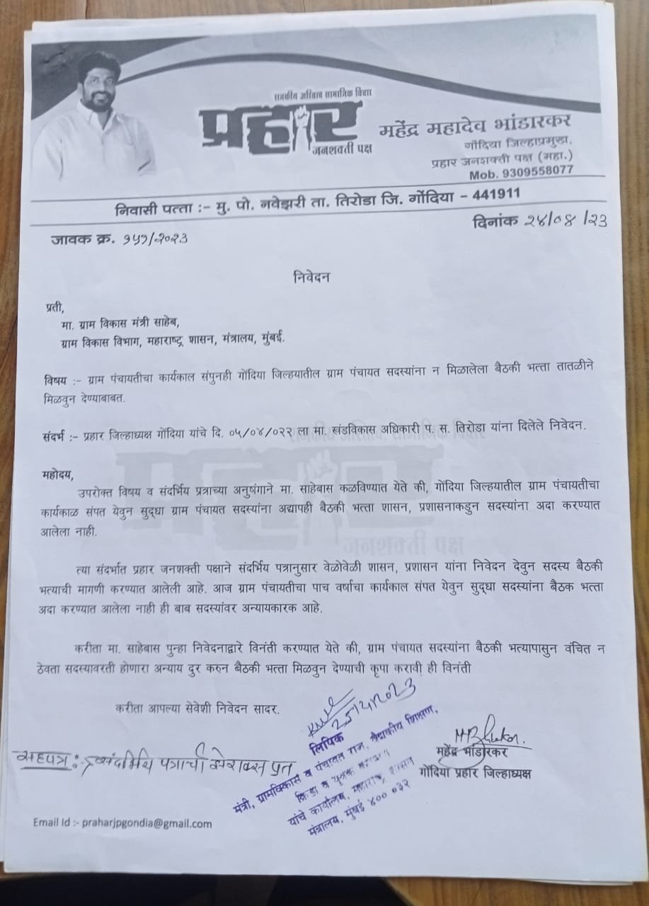 अखेर माजी ग्राम पंचायत सदस्यांचा बैठकी भत्ता मिळाला प्रहार ने शासन व प्रशासन, मुख्यमंत्री दरबारी केली होती मागणी जनता टाइम्स...